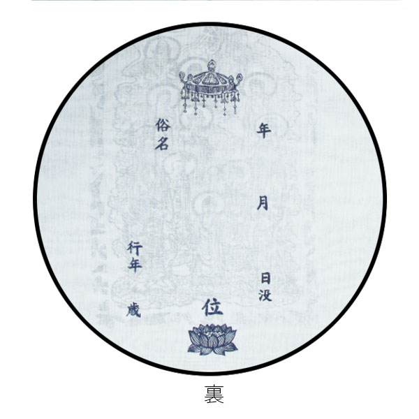 お墓、納骨堂や合同墓に納骨する際に、お使いください。 表面には十三佛が染められています。 裏面に、御戒名、日時、お名前などを記入することが出来ます。