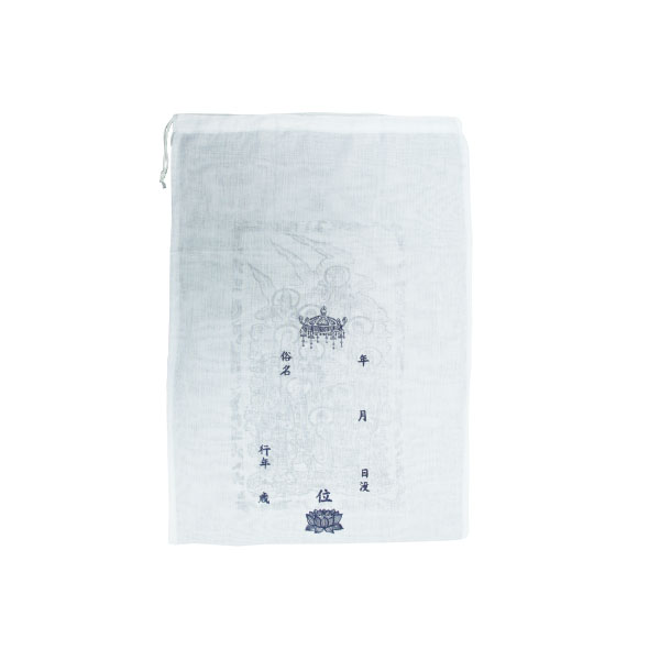 お墓、納骨堂や合同墓に納骨する際に、お使いください。 表面には十三佛が染められています。 裏面に、御戒名、日時、お名前などを記入することが出来ます。